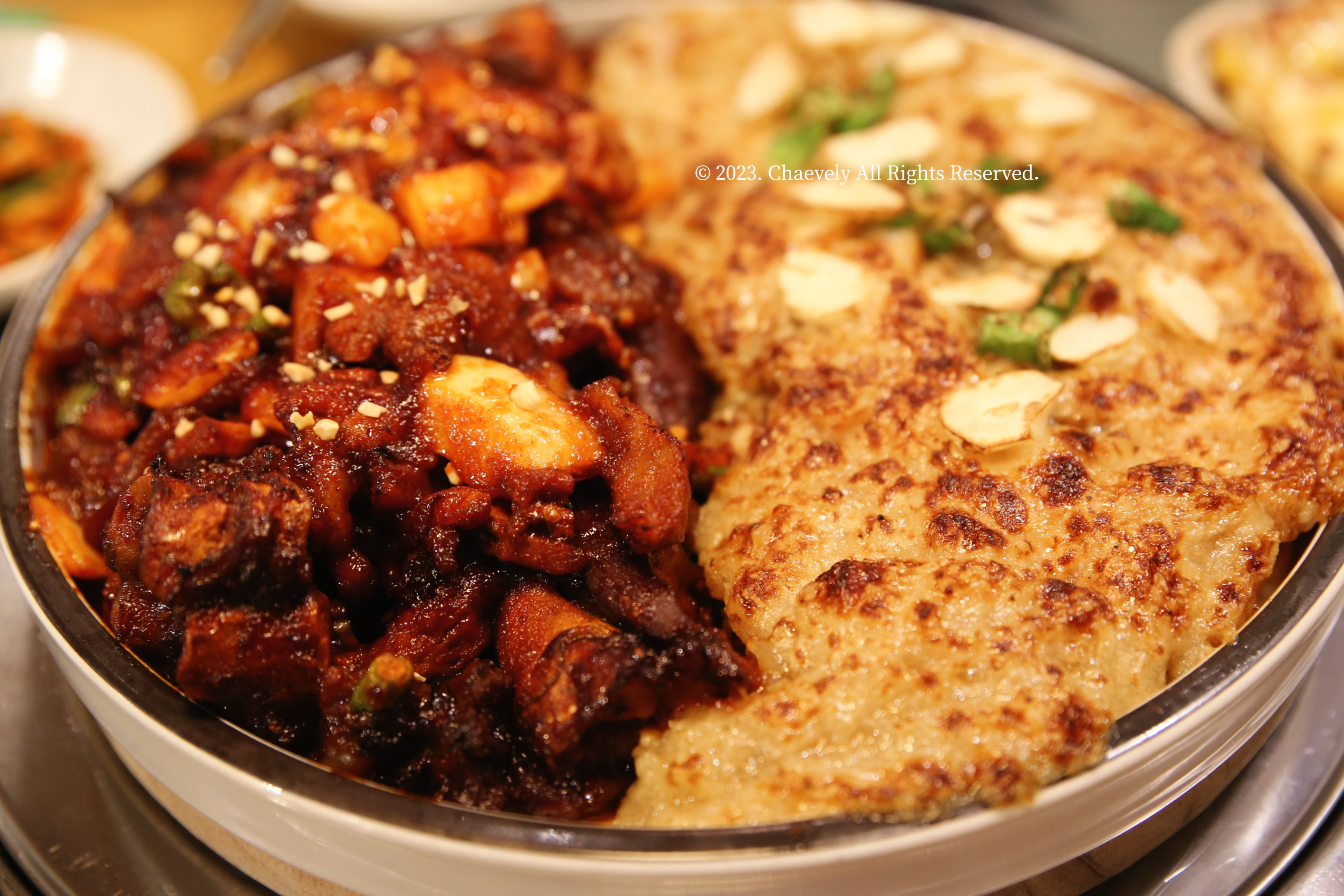 화덕반반세트의 비주얼을 보자마자 먹어보지 않아도 맛있을 거 같은 느낌이 들었다. 접시를 꽉 채운 불족발과 마늘보쌈이 정말 먹음직스러웠다.